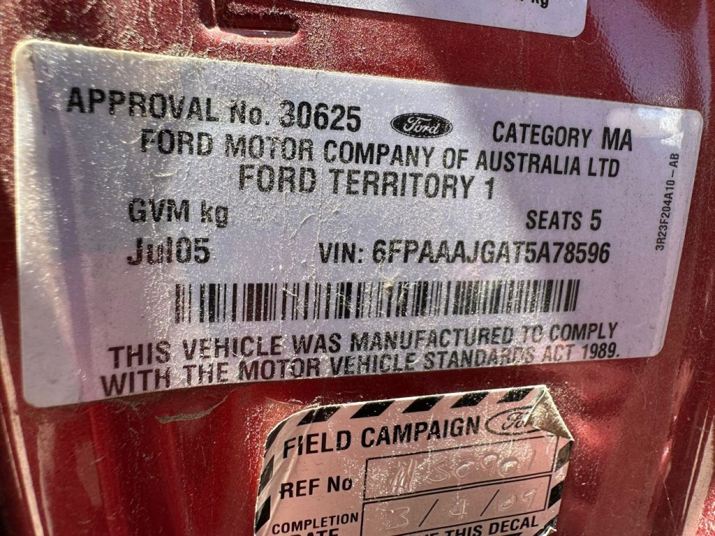 Ford Territory 2005 SX,SY 4.0L BARRA 182 DOHC 24v Petrol 6cyl 182kW SUV RWD