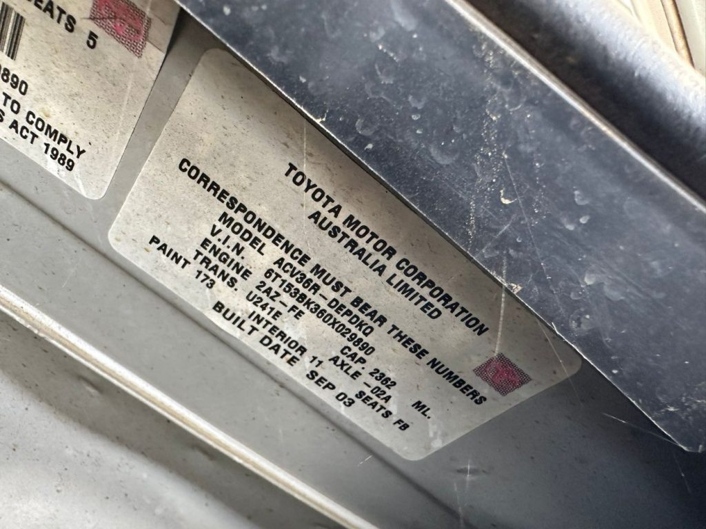 Toyota Camry 2003 ACV36 2.4L 2AZ-FE DOHC 16v Petrol 4cyl 112kW Sedan FWD